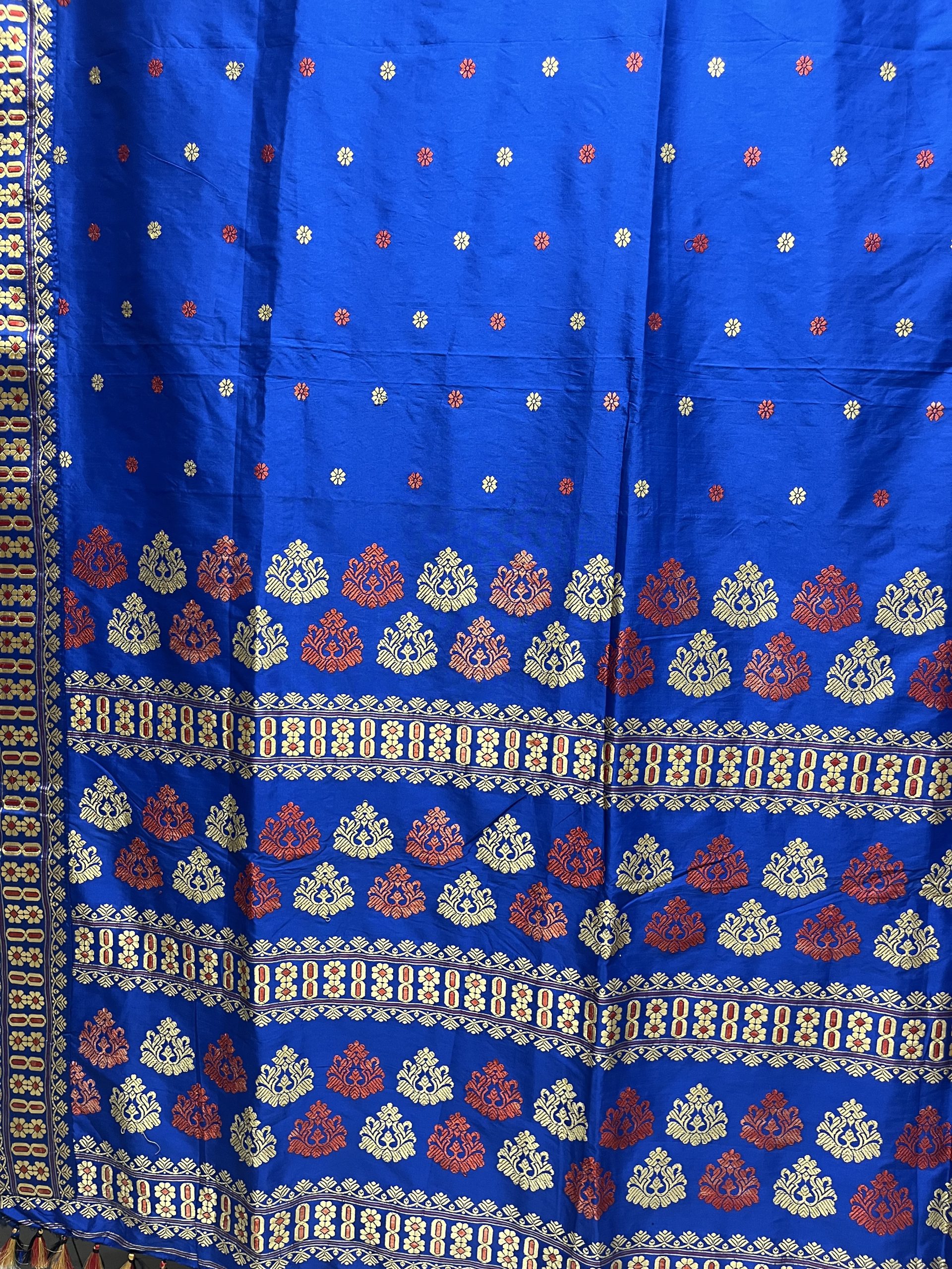 An exquisite royal blue Assam silk saree, handwoven in pure silk with a graceful fall and luxurious sheen. The deep hue enhances its richness, making it a versatile choice for celebrations, weddings, or special gatherings. A timeless weave that reflects elegance and heritage in every drape.